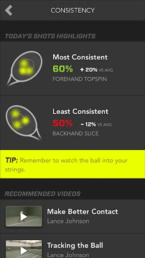 Our redesigned free app offers powerful analysis tools for both match and practice play, delivering detailed reports in 3 key categories about your game—power, consistency and intensity.