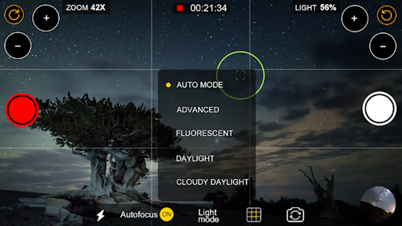 Take photos & videos, and use light mode feature to take advantage of effects like Incandescent, Fluorescent, Warm-fluorescent, Daylight, Cloudy-daylight and more.
