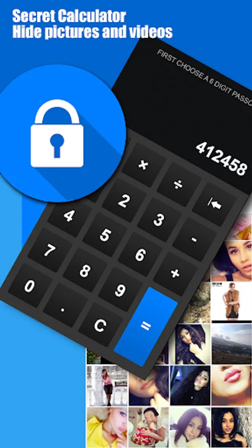 Secret Vault Hide Photos is a standard calculator, which includes hidden file manager. Calculator becomes a secret vault and a file manager where you can store your private data. It is not visible from the other applications like gallery or file managers and only visible from this application.