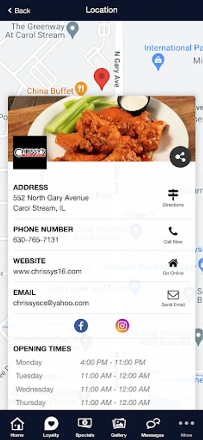 Chrissy's Gaming Bar & Grill is a family-owned restaurant and bar located in Carol Stream, IL. Completely remodeled, our relaxing atmosphere is the perfect place to meet up with friends and neighbors. Our food menu ranges from American comfort foods to unique delicious specialties. We offer a wide selection of Domestic and Craft Beers, as well as, a variety of Whiskeys and Bourbons for your sipping pleasure. We offer Daily Specials everyday of the week. So come on in and watch your favorite teams on one of our five large, flat screen TVs or try your luck playing our video gaming machines in a private setting.Our Mobile app is designed to enhance our customers experience with specials, loyalty, coupons, updates on events and more. Use of the phone's camera is used by the Loyalty Tab and needed to scan a QR code for loyalty points.