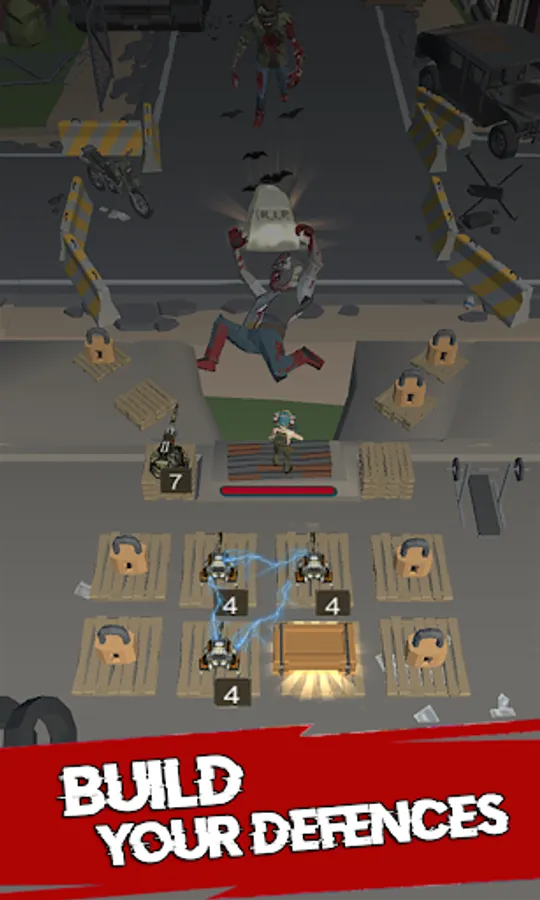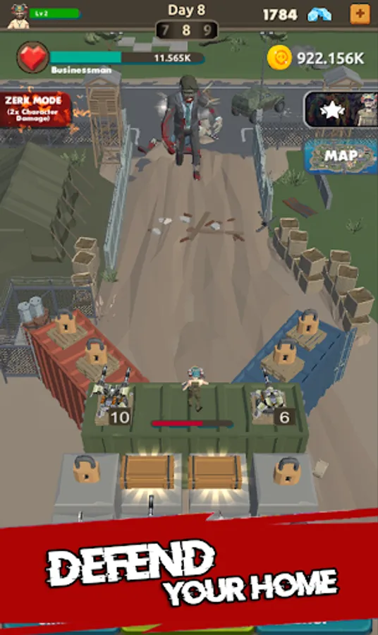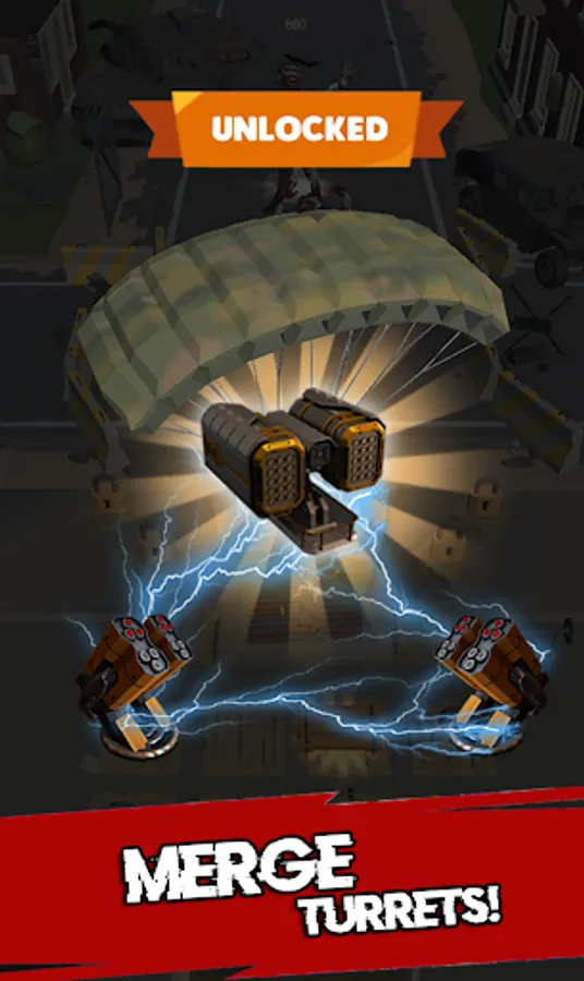 IDLE – Collect coins as your turrets shoot down zombies, even while your offline! Use golds to buy more turrets to merge and upgrades to power them up.