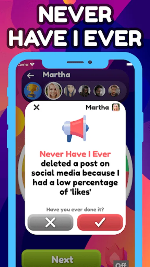 - Never Have I Ever 😂😂 The game where there are phrases saying "Never Have I Ever..." People who have at some point done so must take a sip of their drink.
