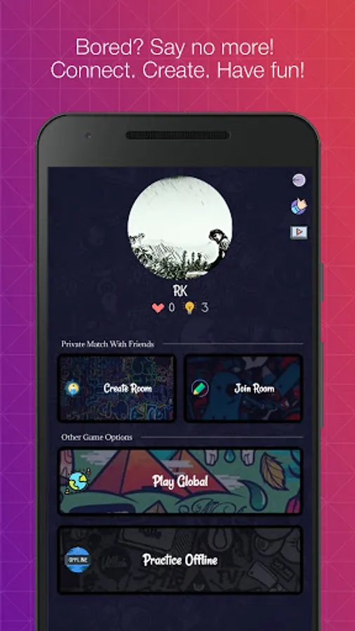- Different game modes, Private Room, Local and Quick match with different players around the world to draw and guess with