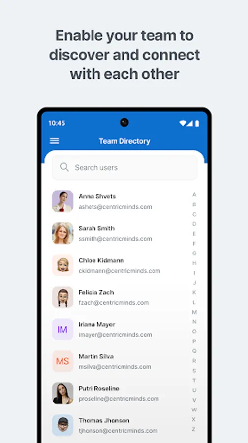 CentricMinds for Android is the powerful companion to the web based CentricMinds Intranet.