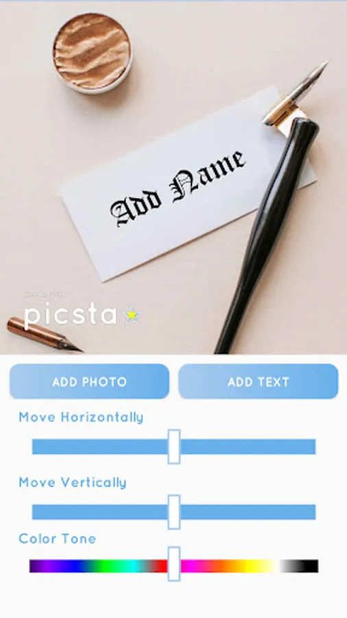 Have full control over text size, color and look. Picsta offers many options for text on photo with font and style. Each template has a built-in photo text color changer.