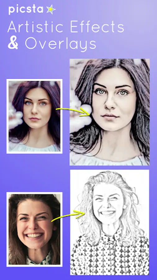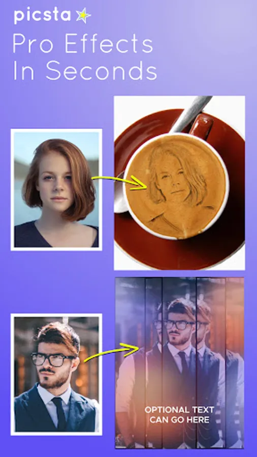 Picsta has an ever growing library and new effects and presets are added almost everyday, for that we have made Picsta a server based application which not only saves a ton of storage on your device but also lets you choose from hundreds of creative photo templates.