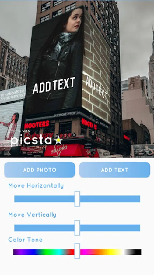 Picsta offers photo editing templates that let your imagination go wild. Put your photo on a billboard or put your photo on an outdoor LED. Want to write your message on sand or a beach? Picstas got you covered.