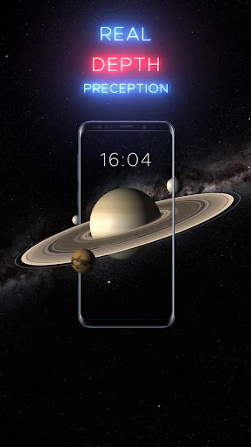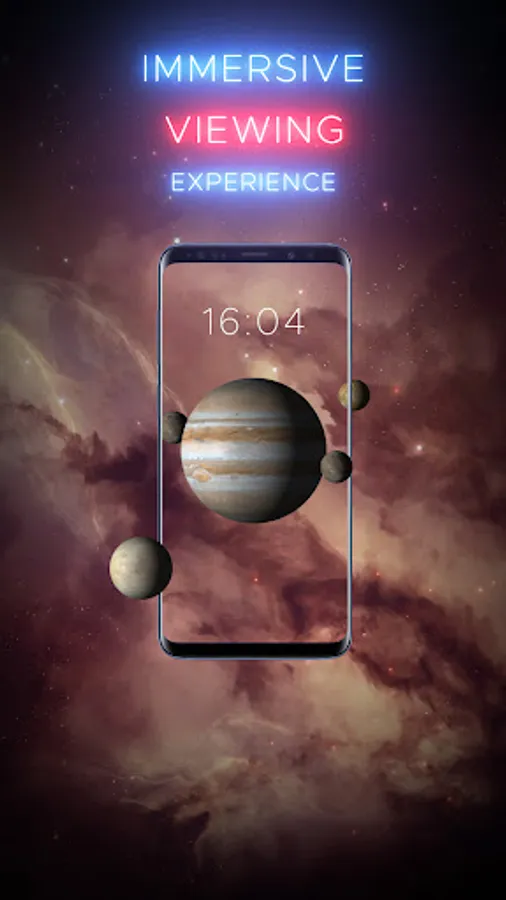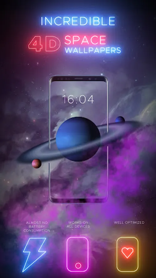 Enjoy an immersive 4D live wallpaper experience with Earth, Moon, Mars, Jupiter, Saturn, Neptune, Pulsars, Blackholes and Galaxies,