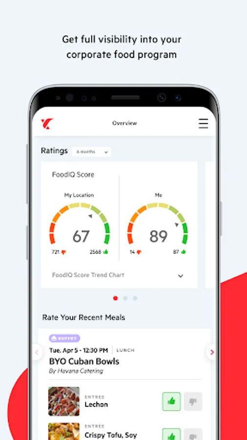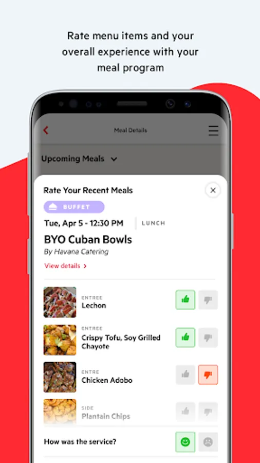 Influence your food program: the more you rate, the better and more personalized future menus become