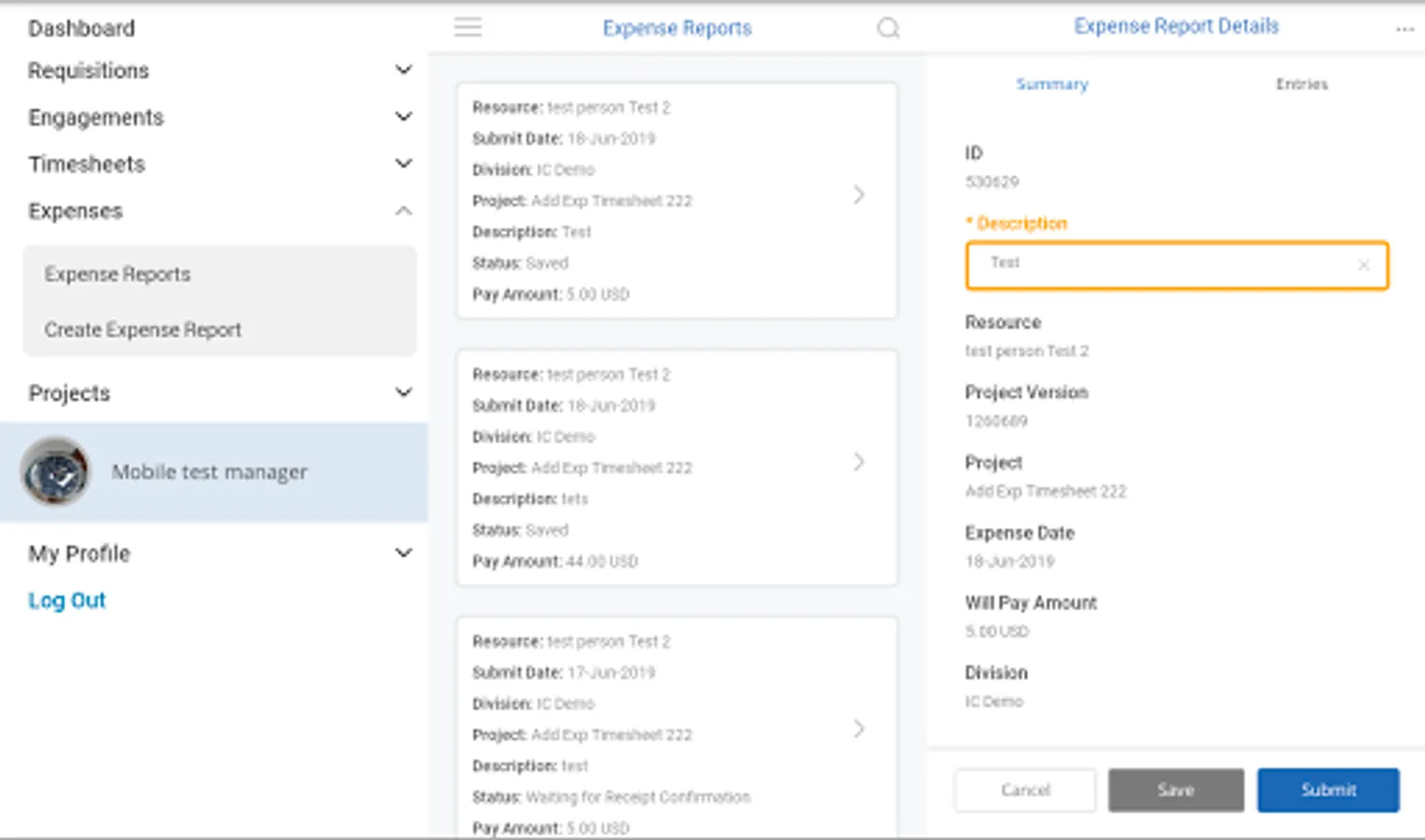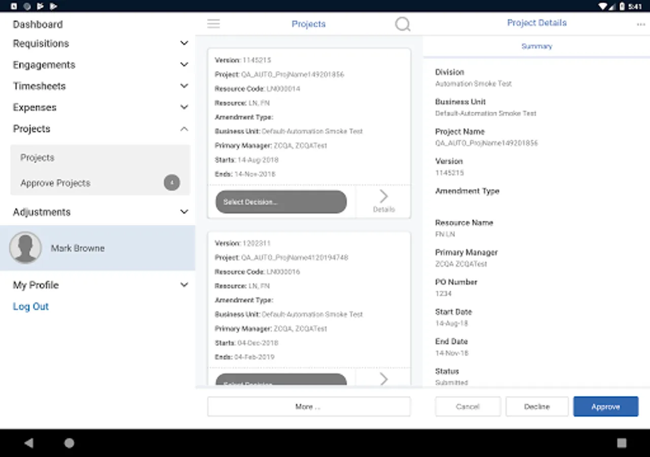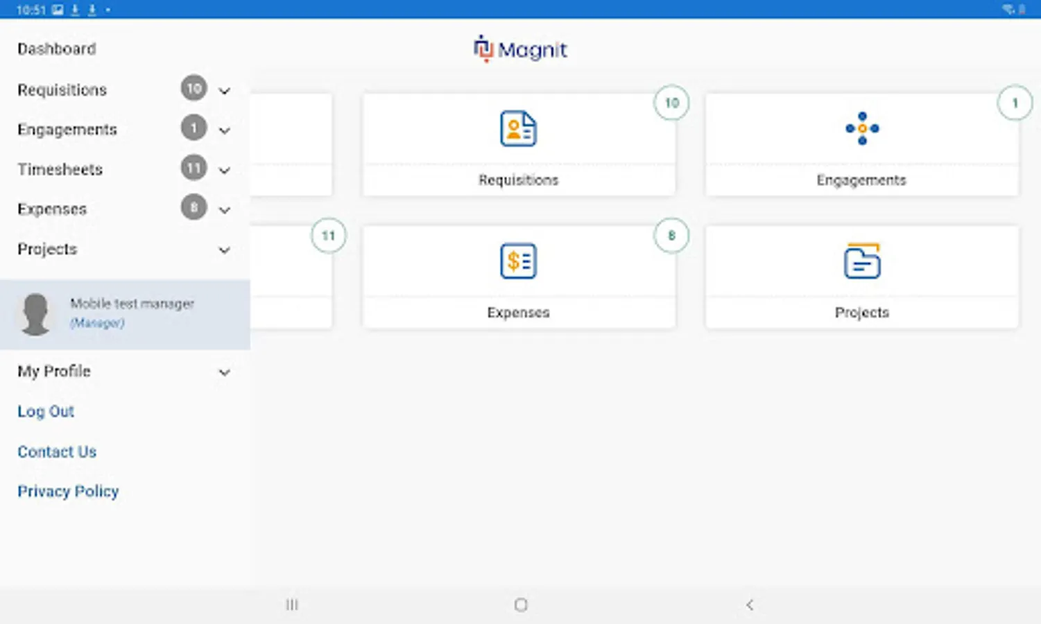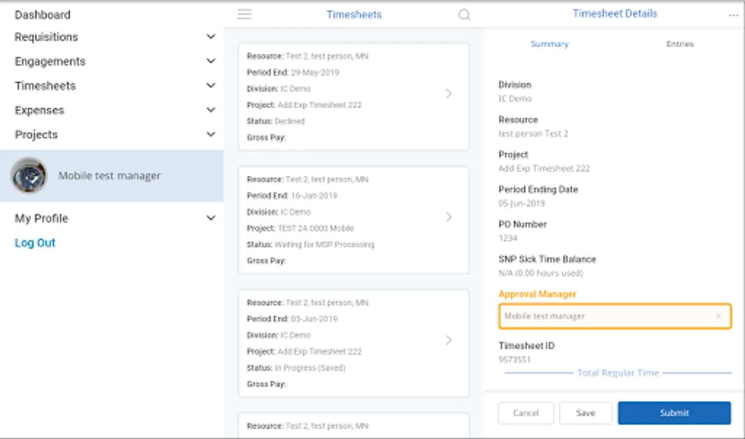 Using Workforce Logiq Mobile, Hiring Managers can quickly view and take action on Staff Augmentation and Statement of Work-based projects including creating and approving requisitions, timesheets, and expense reports, comparing candidates, modifying statement of work engagements, and more.
