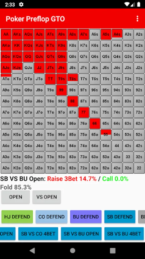 Also includes a randomizer tailored for Poker. Play your mixed strategies with indifference.