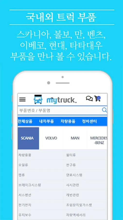 We handle parts and supplies used in domestic and foreign commercial vehicles such as Scania, Volvo, Benz, Bay, Iveco, Hyundai, Tata Daewoo, etc.