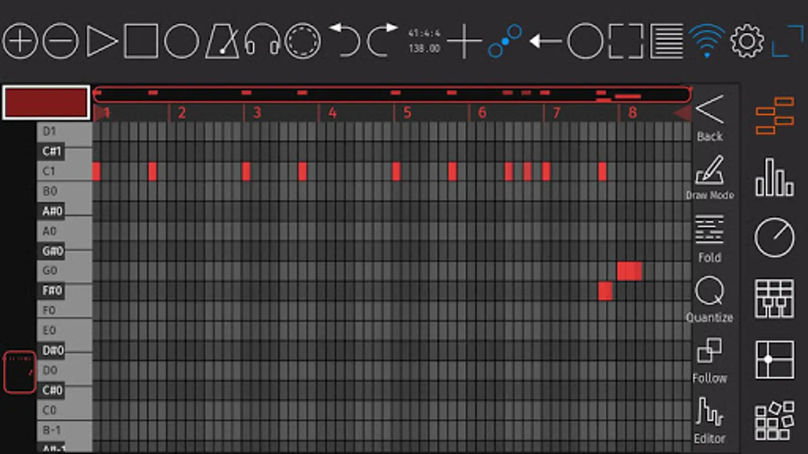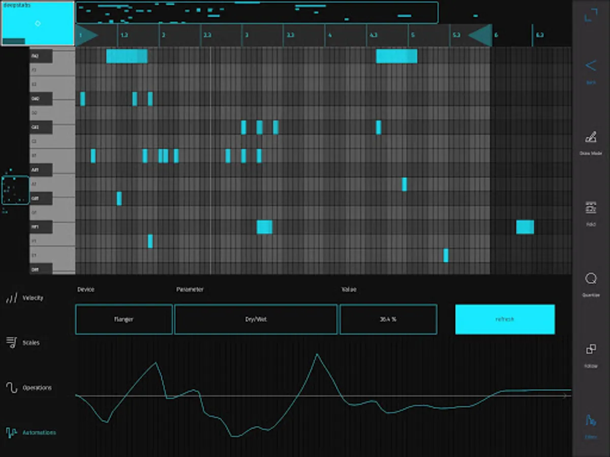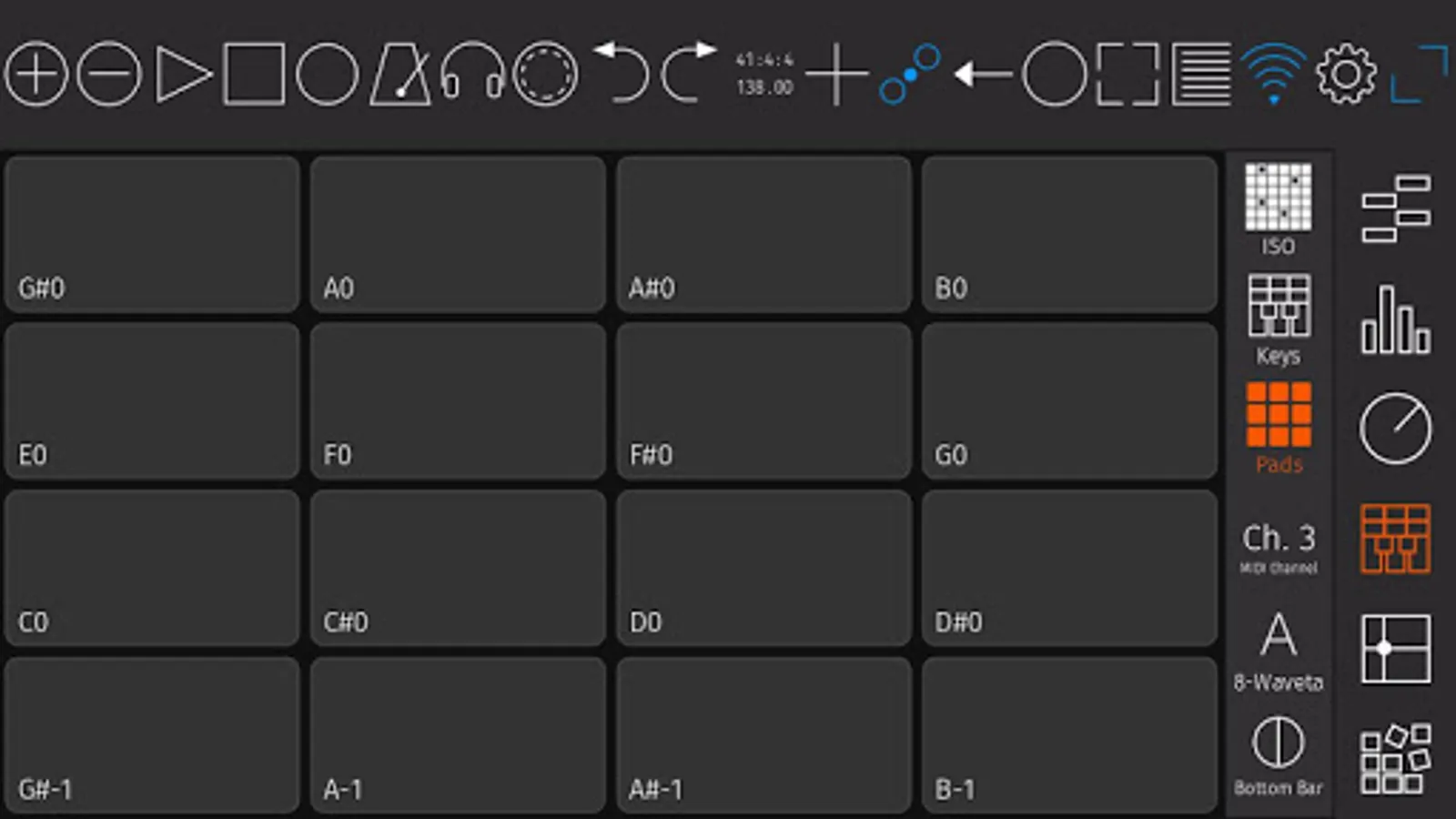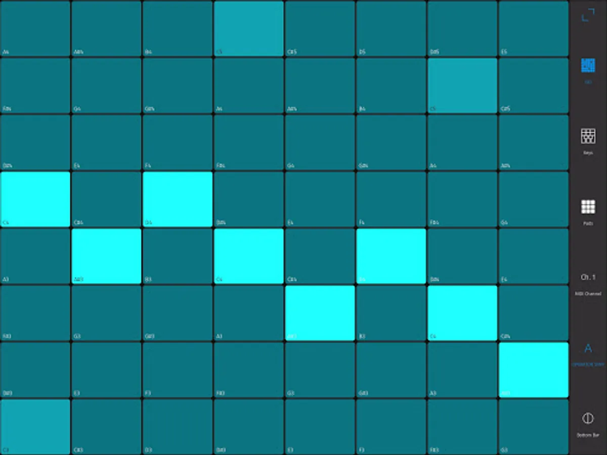 - Play instruments with grid or piano-style layouts, with scales, note repeat, aftertouch, and velocity (based on finger position)