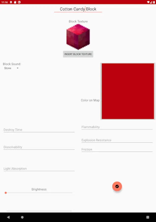 Blocks are highly customizable, with various descriptors such as brightness, flammability, friction and many more!