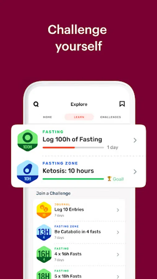 CHALLENGES - Opt in to Challenges that align with your health goals, invite friends, unlock Achievements, and stay motivated with guidance from weight loss and fasting experts.