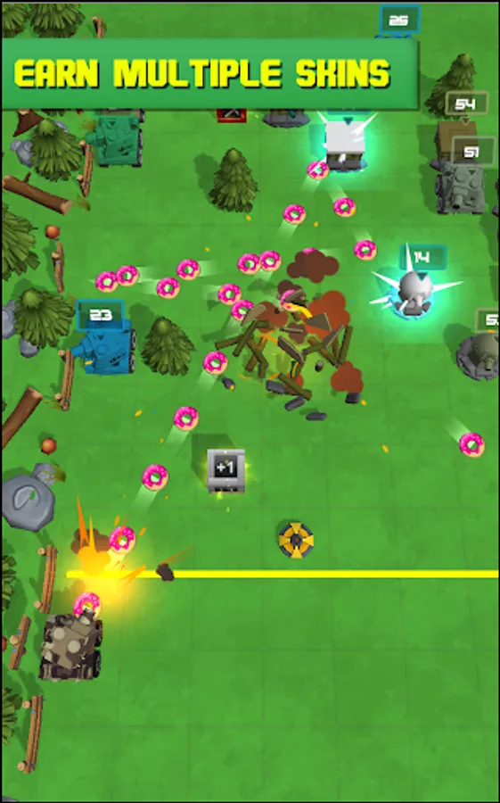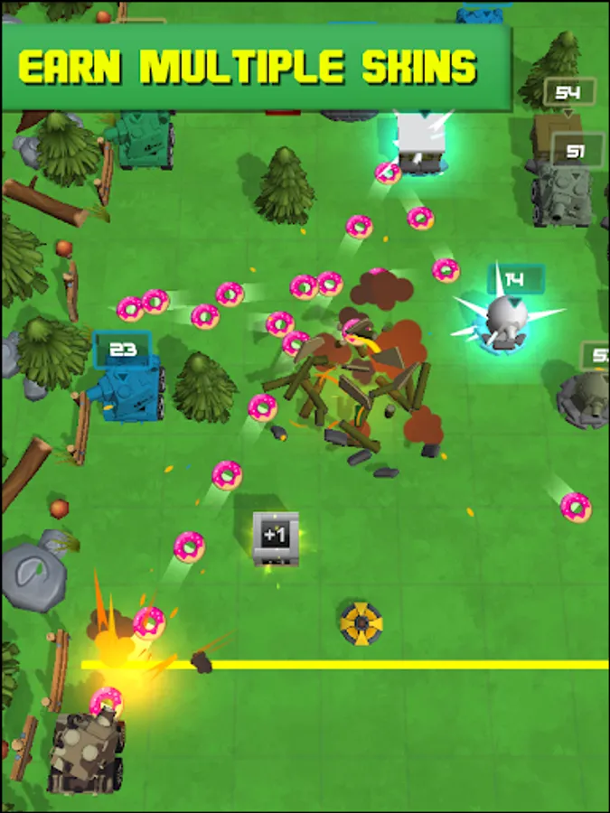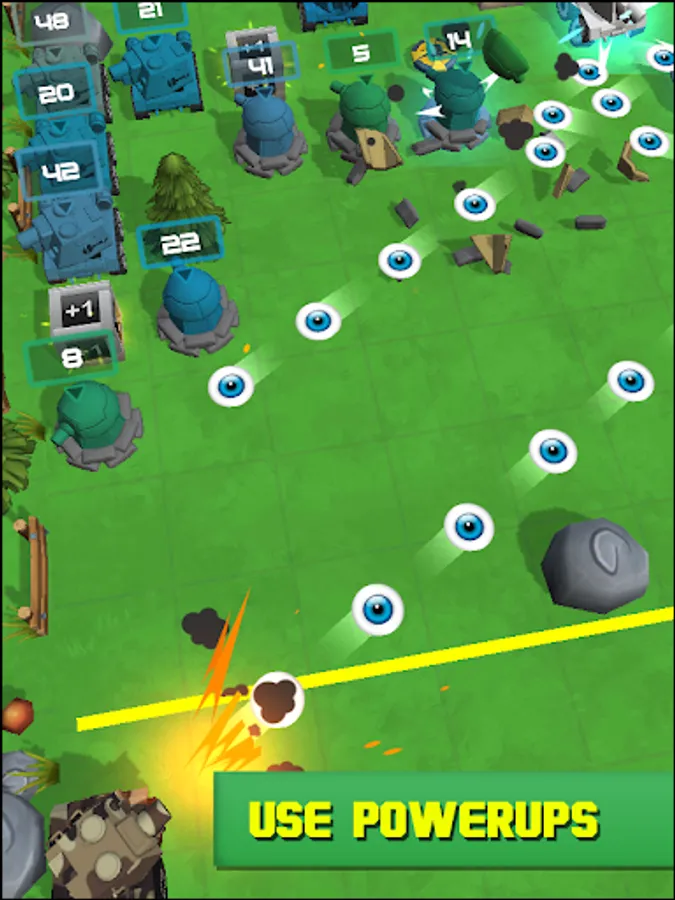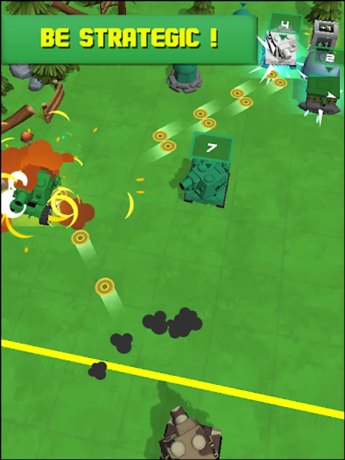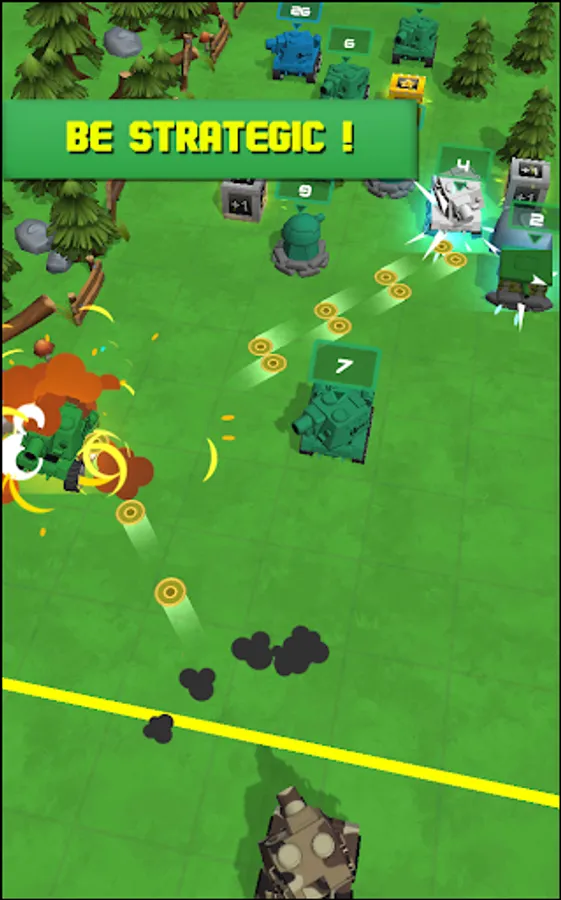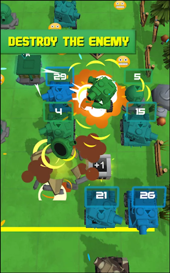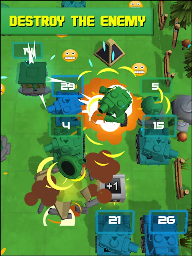 All the tanks have number displayed on them, every time a bullet/ball hits them the number decreases. When the number reaches zero the tank explodes!