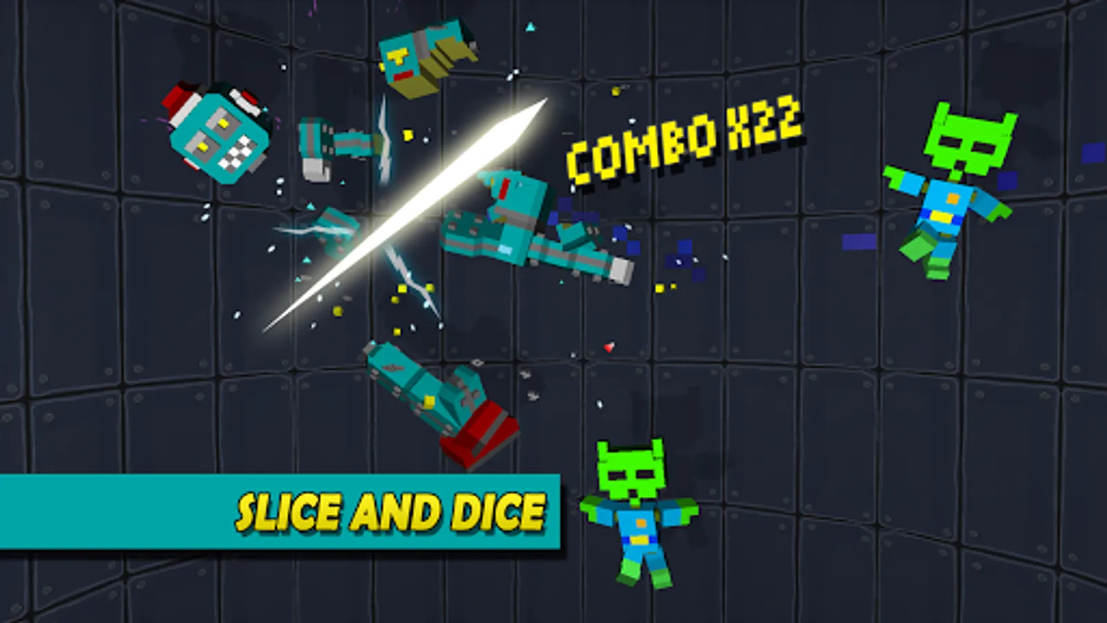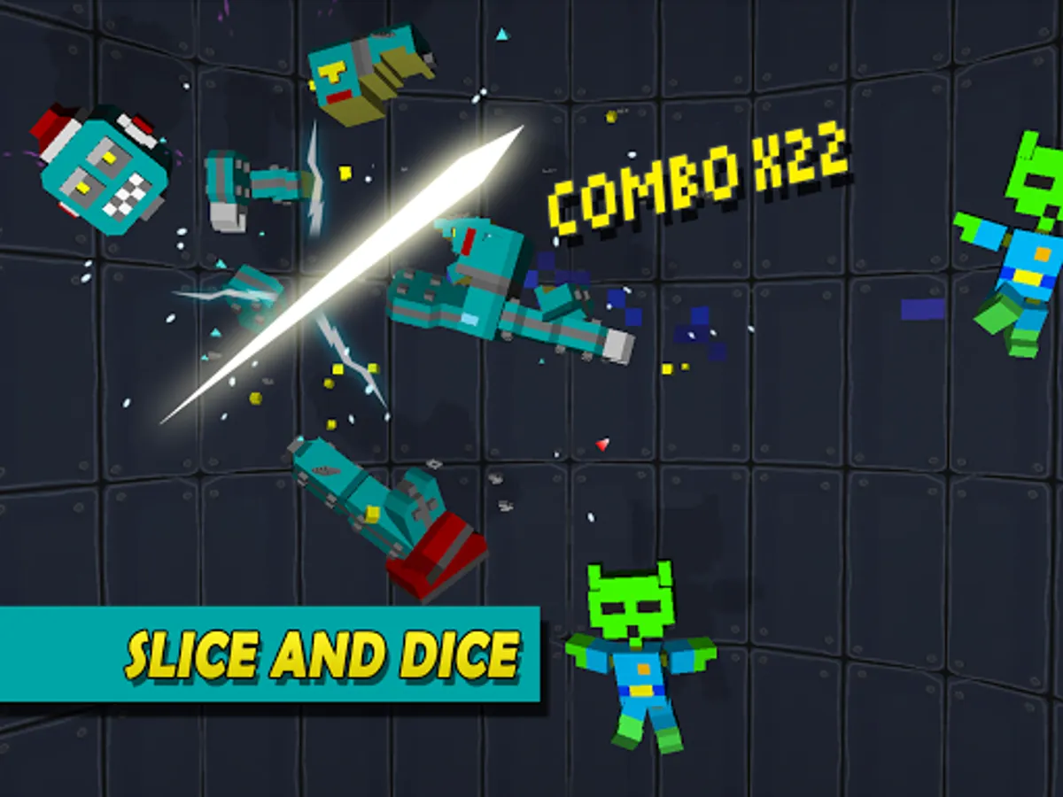 • Pixels will drip down the walls as you slice and dice the craft robots