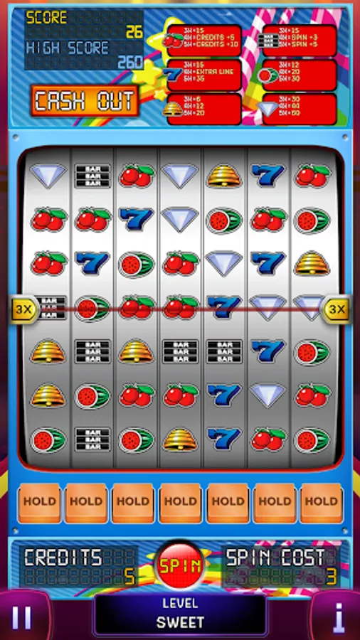 In this game, your goal is to match three or more of the same symbols to clear them from the board and earn points. You can rotate the columns of symbols by pressing the spin button, or you can use the hold buttons to lock individual columns in place and affect the outcome of the spin. This adds an extra layer of strategy to the game, as you'll need to think carefully about each move you make.
