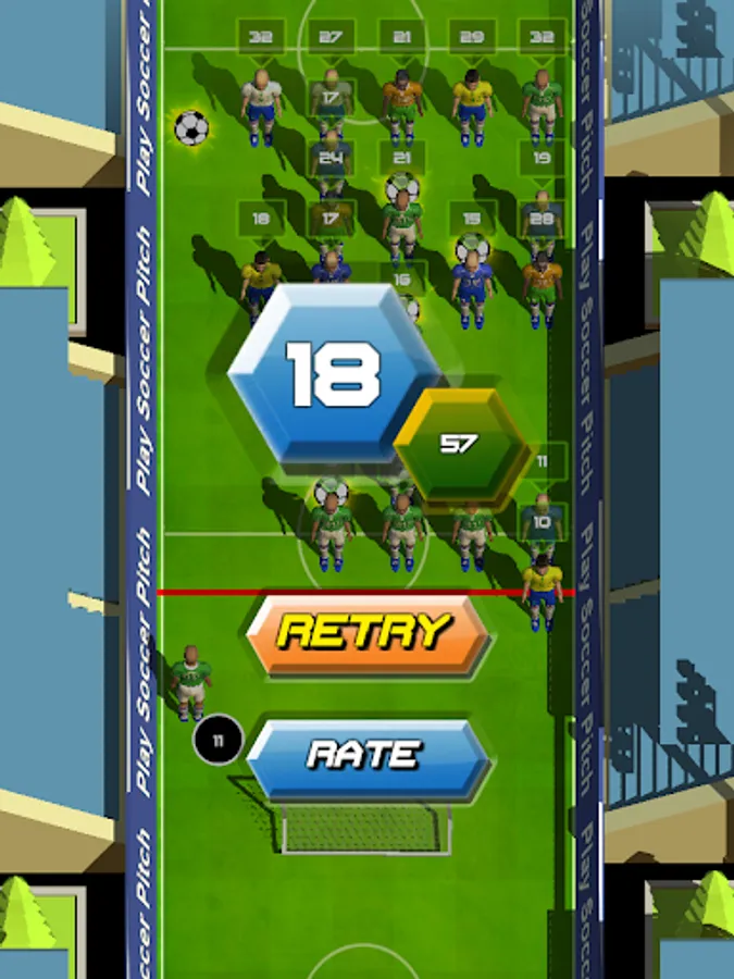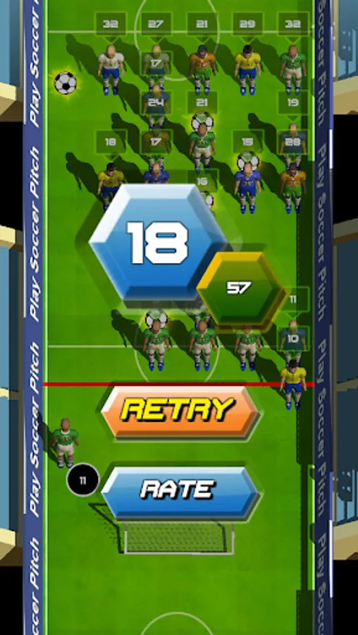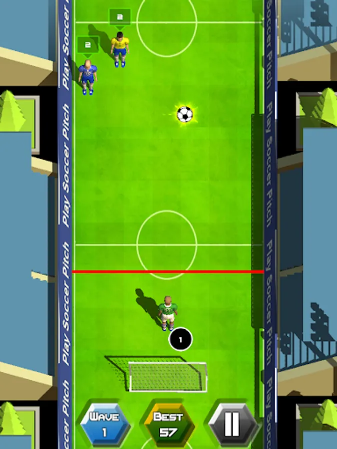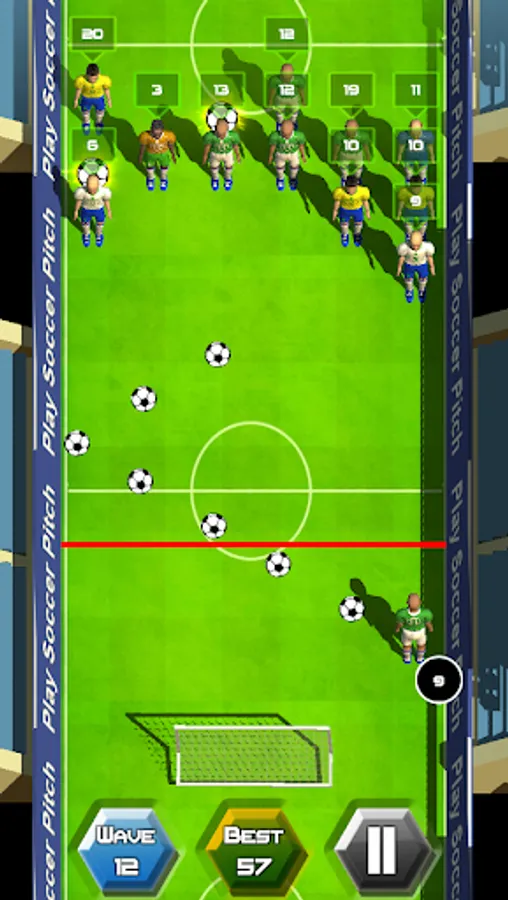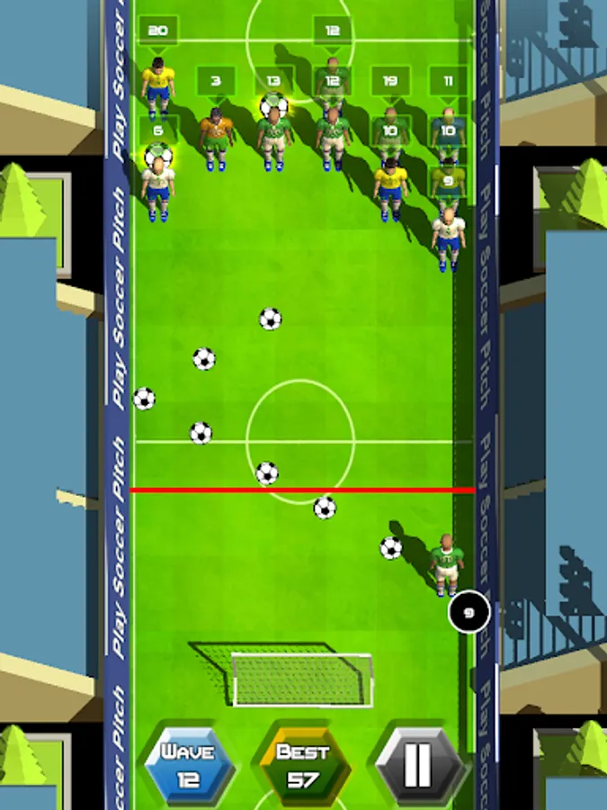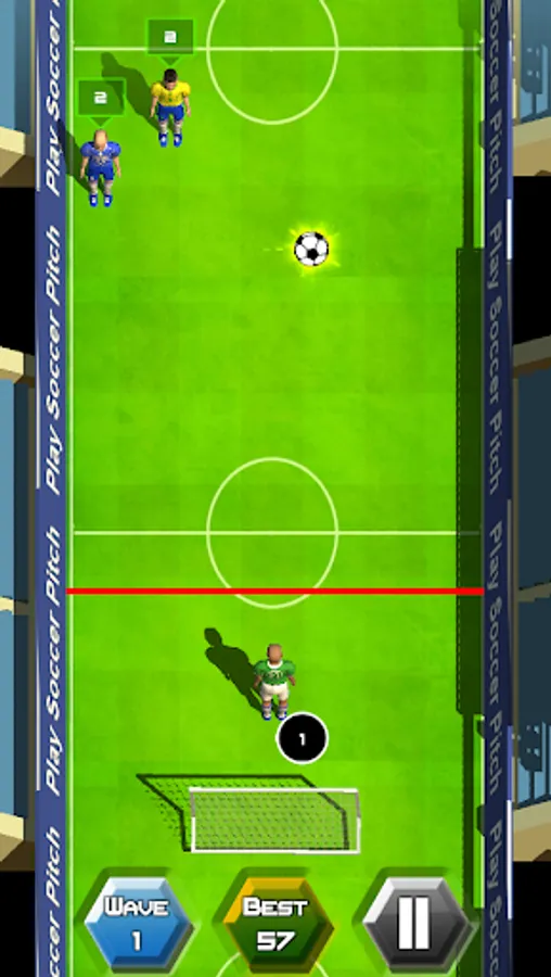 The foosball players are out on field and marching towards you. Kick your soccer balls at them to keep them away from your goal!