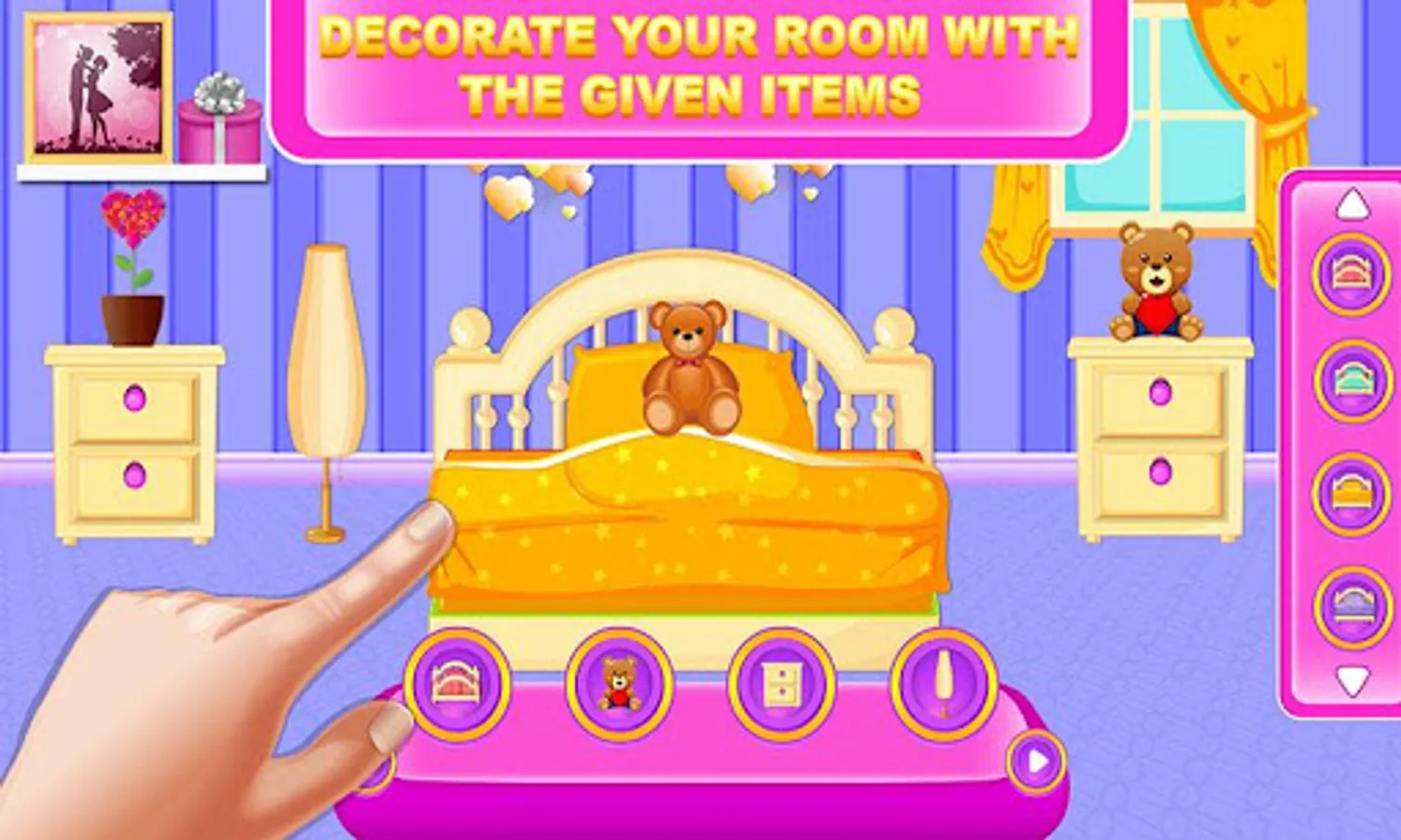 Become the interior designer you have always wanted to be.Decorating can be lots of fun and with this room decoration game, you can show your creative skills and decorate a bedroom just the way you like it.