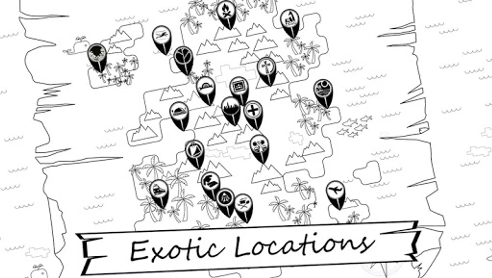 Explore Airport, City, Messy room Island and many other locations from the secret island.