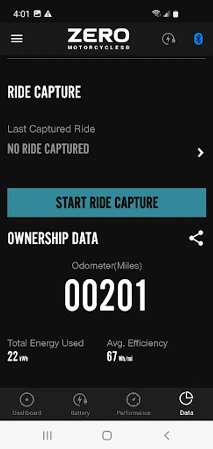•.Ride data: location, speed, lean angle, power, torque, SoC, energy used/re-generated