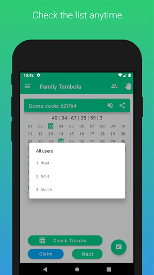 1. Offline: which allows you to get random numbers generated for your Tambola tickets.