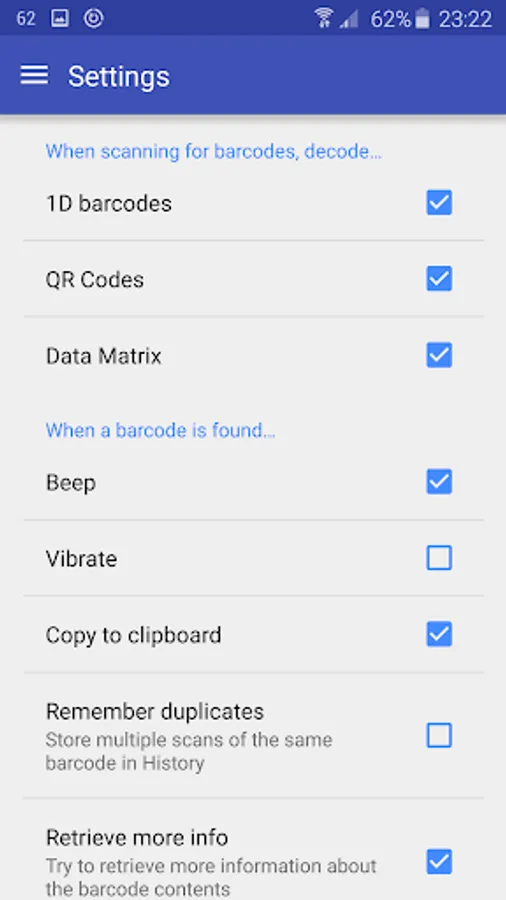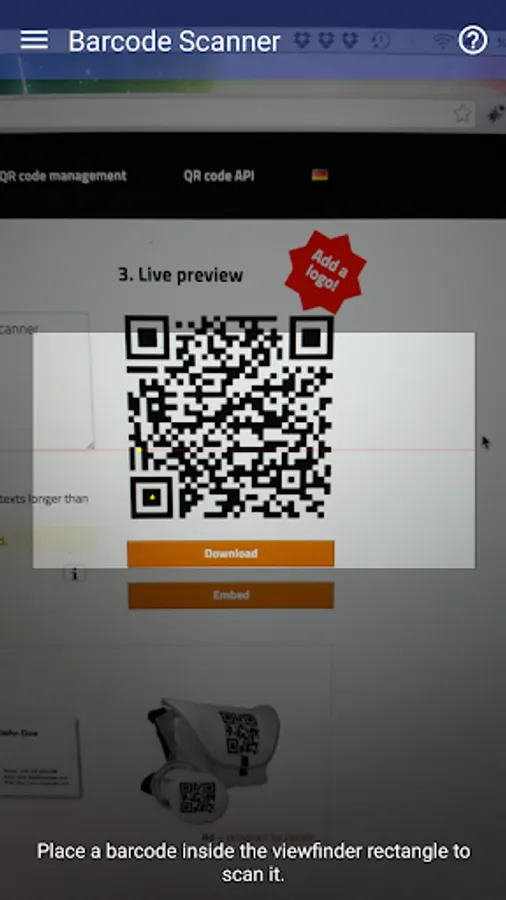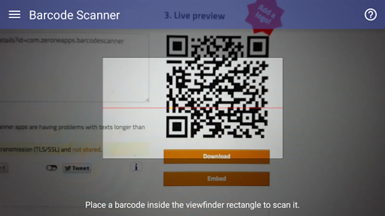 To scan a barcode simply open the app, point the camera at the code, and you’re done! There is no need to take a photo or press a button. 'Barcode Scanner' will automatically recognize any barcode your camera is pointing at.