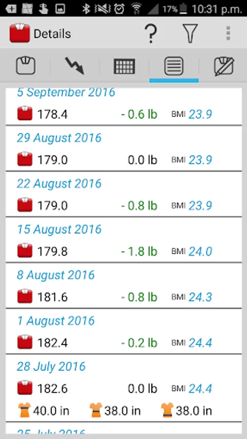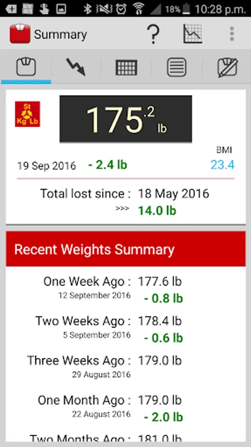 * Record weight in Pounds, Stones or Kilograms, and convert all values instantly.