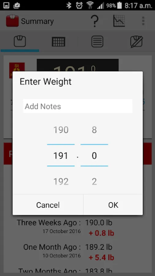 * Record your Weight. (Optionally, Undressed and Clothed weights can be recorded separately.)