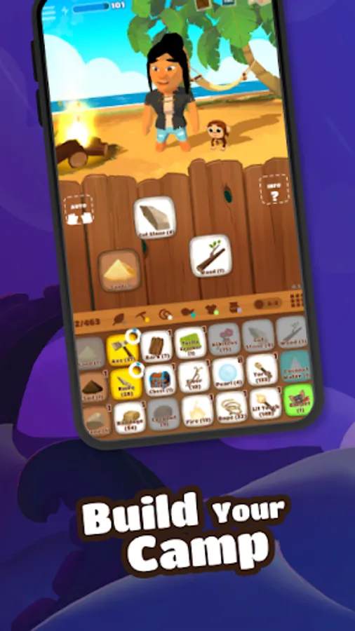 Monkeys, turtles and other animals will help you find the items you are looking for. Send them across Kraken Island to explore it and help you survive and build new items!