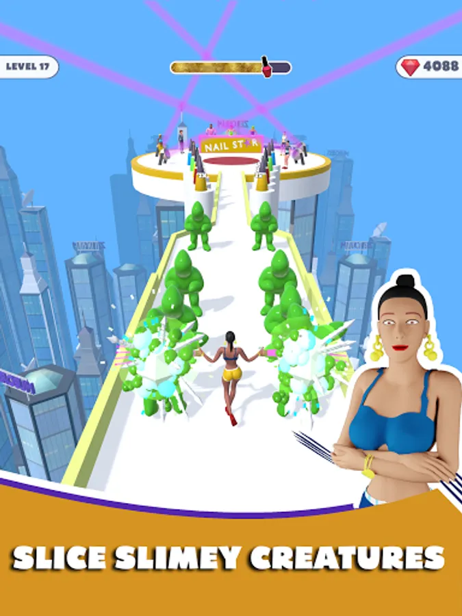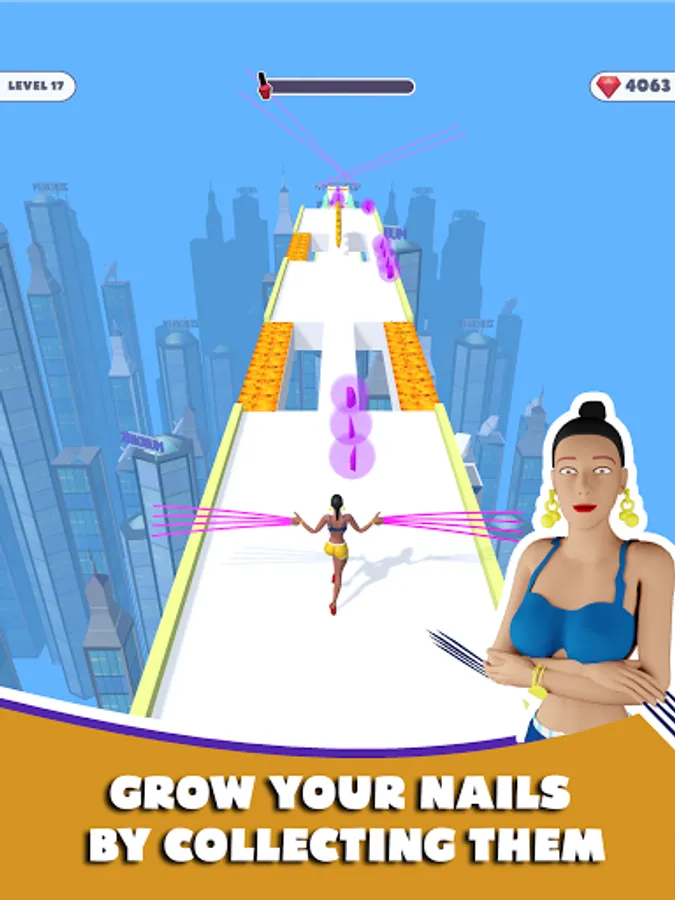 Make your nails longer by collecting them. Slide down the nail file poles! There are obstacles on the way, watch out! Do a headstand and use your nails like legs and pass the pools. At the end of the level pop them nail polish bottles and get extra coins!