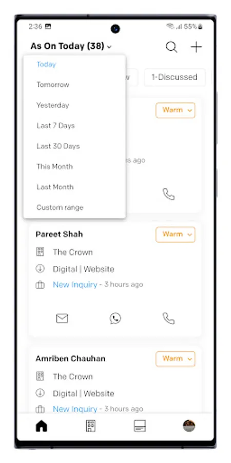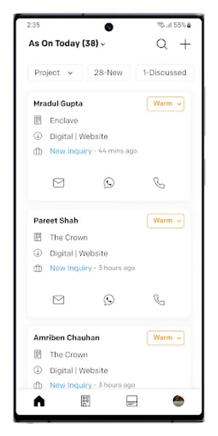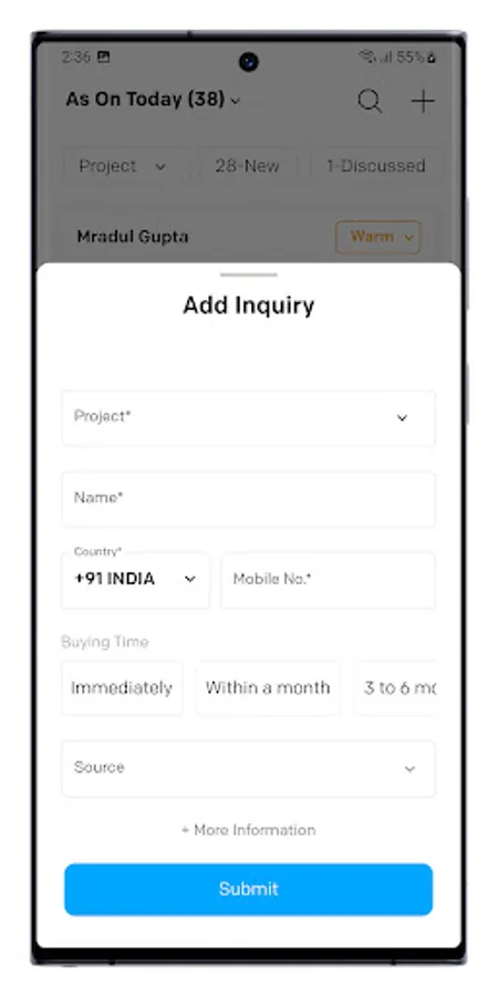 It has the ability to add manual leads for the projects, editing of the leads, adding stage wise followup activity, see inquiry details of the customers and transferring of leads.
