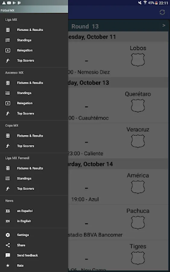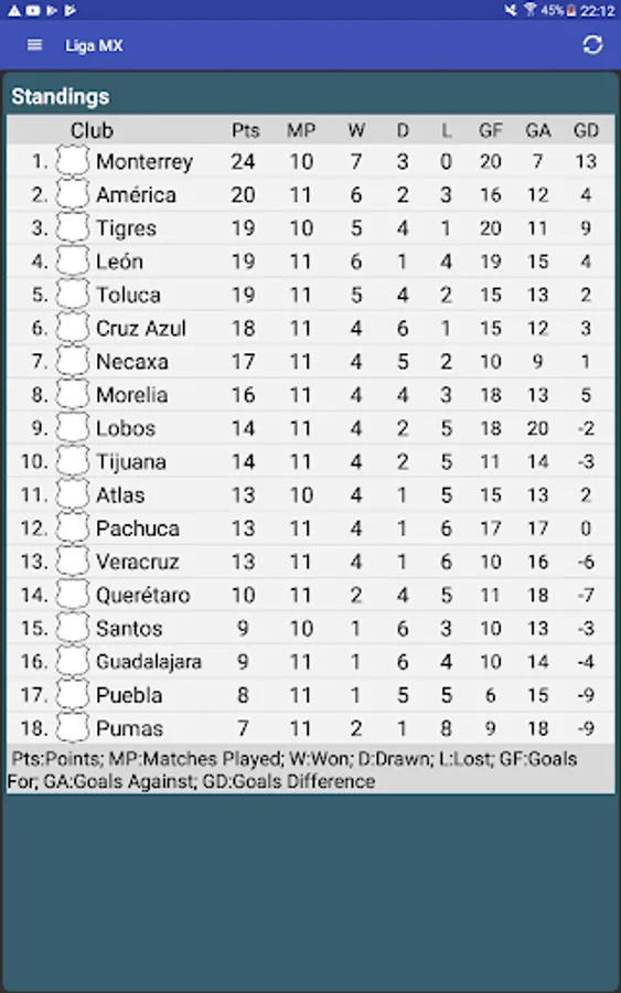 This app brings you all relevant information concerning the Mexican soccer championship: