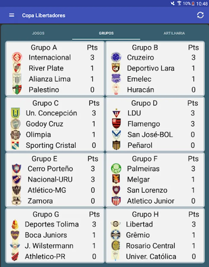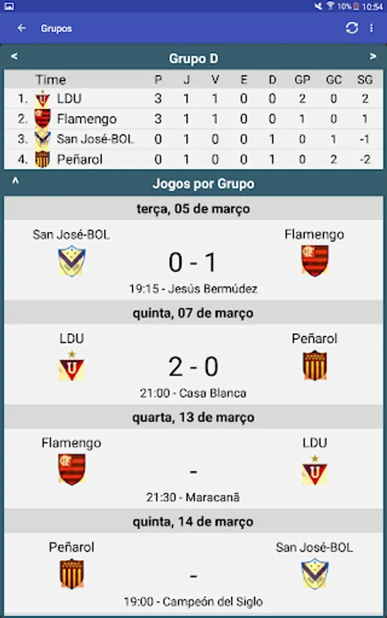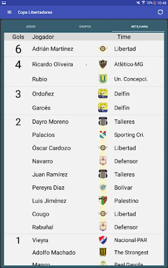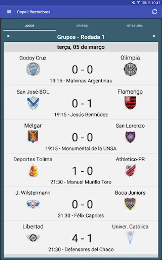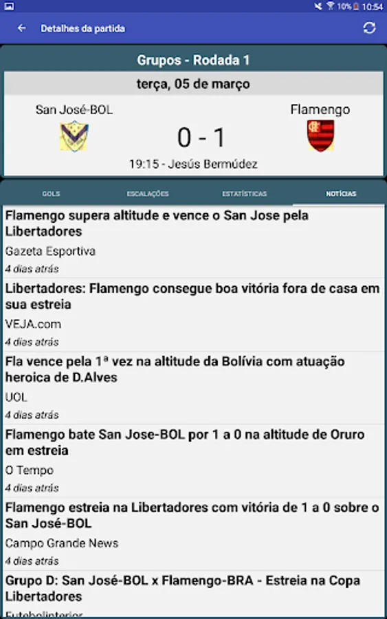 The application brings news and statistics for each match, as well as leaderboards and top scorers.