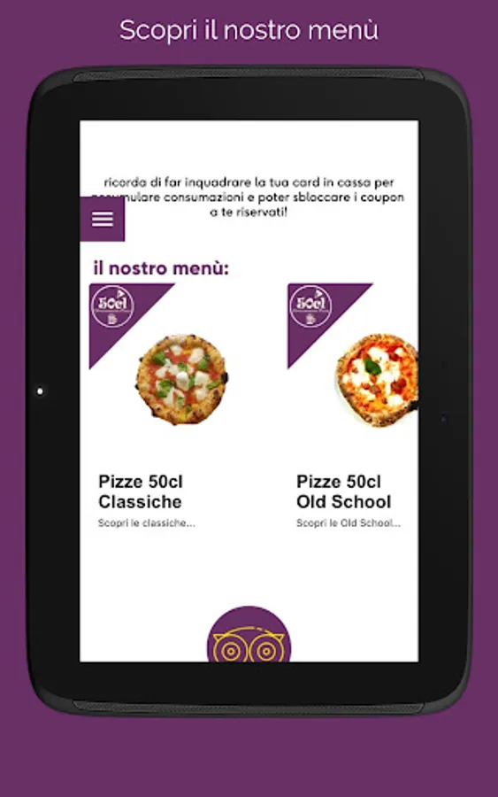The app presents a sliding menu with images and product descriptions, so as to facilitate the choice of the customer.