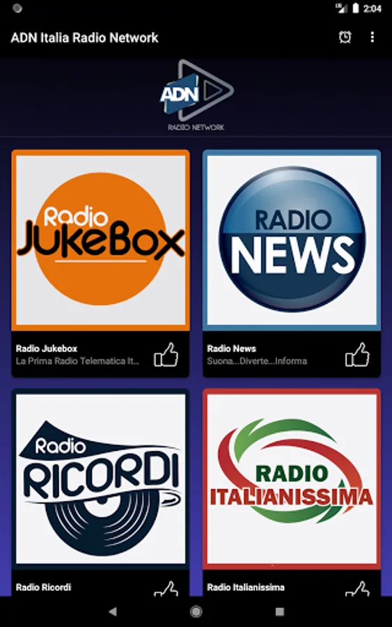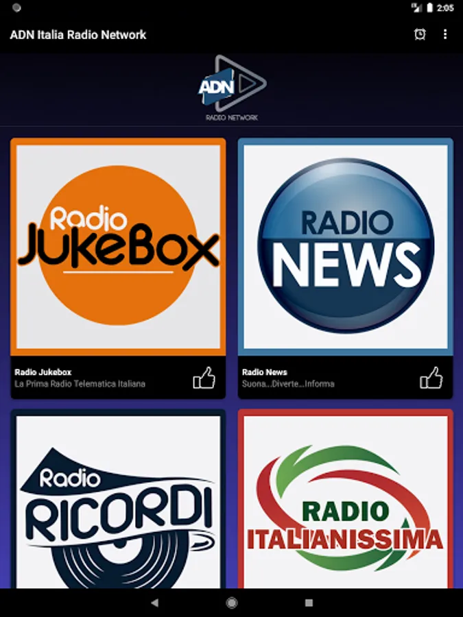The new app of the ADN Italia Radio Network group to listen to Radio Jukebox, Radio News, Radio Ricordi, Radio Enne Lamezia and Radio Italianissima.