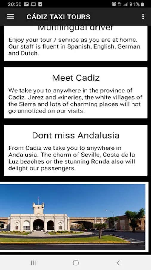 Cadiztaxitours is a family business, which after years of work in the tourism sector, offers services related to tourism with driver, we take you to know any point of the province of Cadiz, Jerez and its wineries, the white villages of the Sierra, the beaches from the Costa de la Luz, even from other parts of Andalusia, such as the city of Seville ....