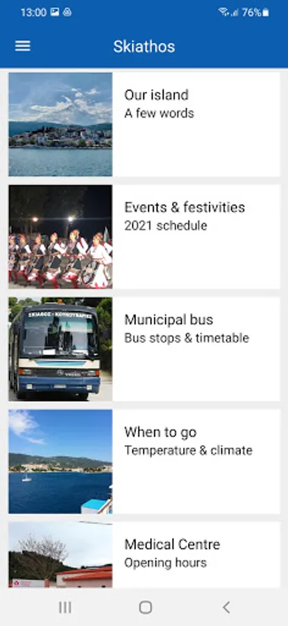 The Skiathos app is powered by our Zesti platform, and we work together with the people of the island, meaning its content will be constantly updated without you having to update the app.