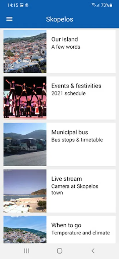 The Skopelos app is powered by our Zesti platform, and we work together with the people of the island, meaning its content will be constantly updated without you having to update the app.