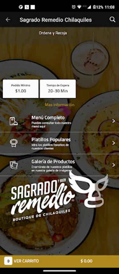 Wrestling themed Chilaquiles boutique. In this mobile application you can 1) Order at home 2) Order to pick up 3) It will generate an electronic wallet with each purchase 4) Promotions valid in the restaurant 5) Rewards for restaurant visits. Welcome to the fight!
