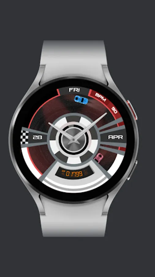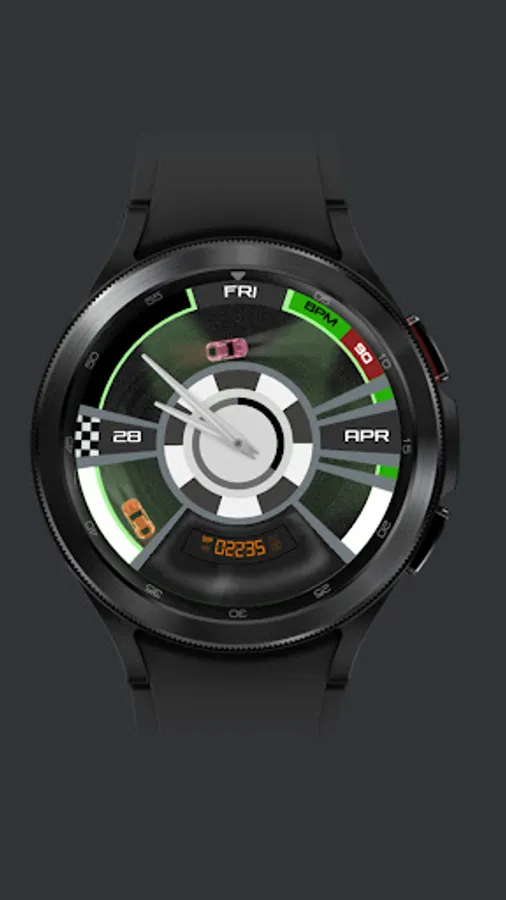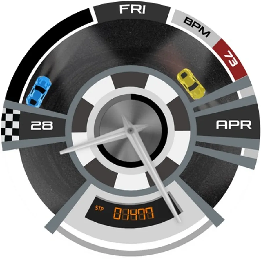 A unique and highly customisable watch face with two cars racing around the screen! Watch cars race around your watch face whenever you check your watch!