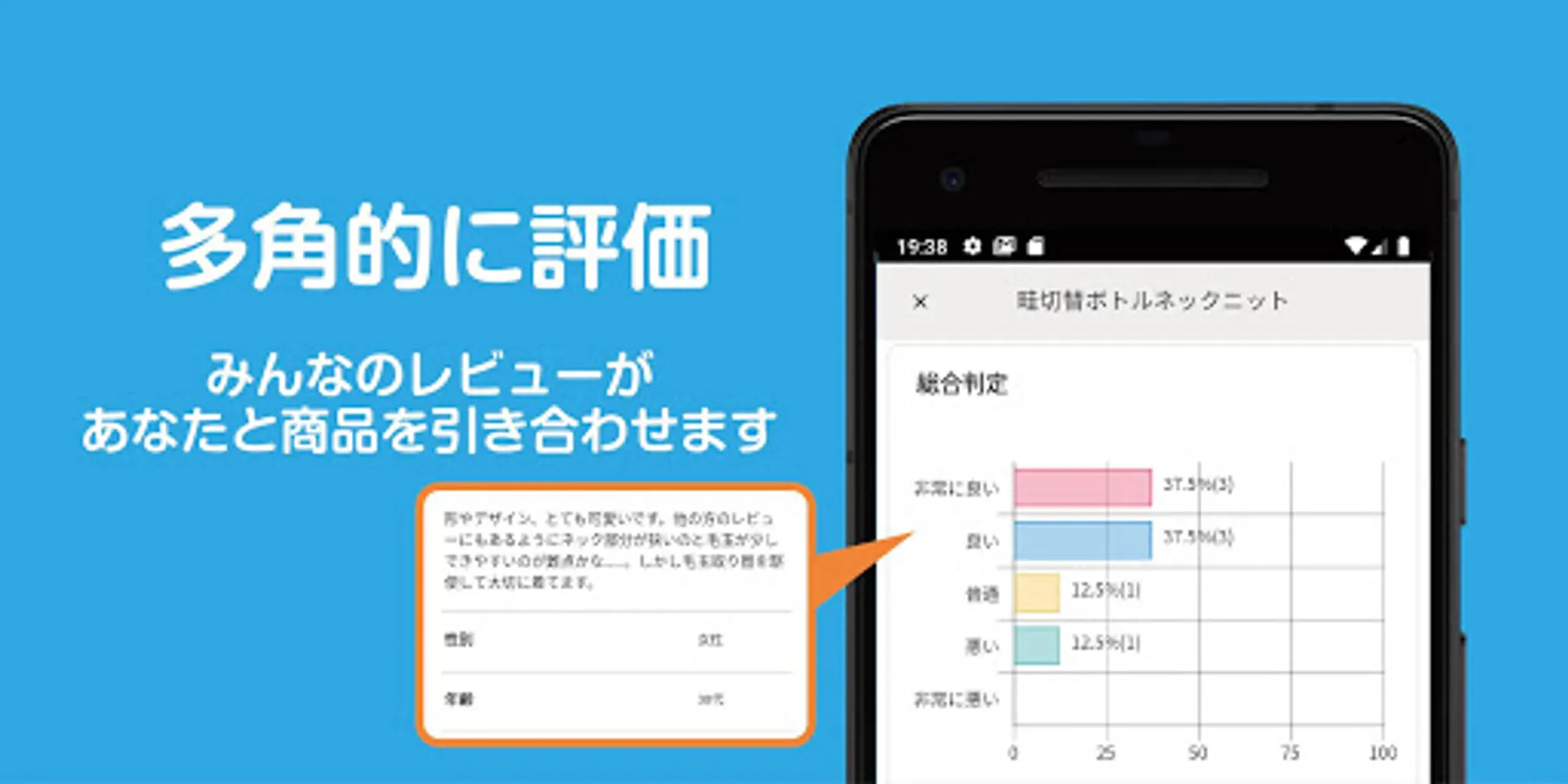 2.それぞれの商品レビューページでは総合評価と合わせて、アパレルショップの場合にはレビュアー自身の身長や実際に着用した服のサイズ感など、詳細なレビューを見ることが可能です。