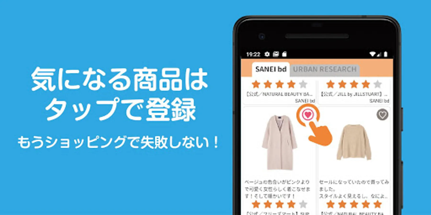 5.気になる商品レビューはハートマークをタップしてお気に入りに追加し、自分だけのレビューリストを作ることが可能です。