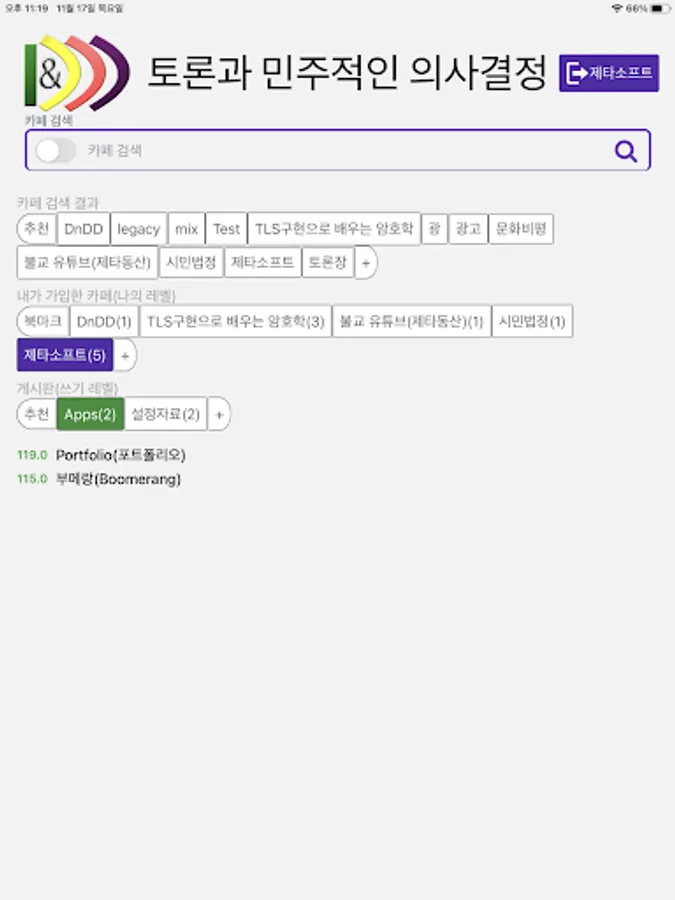 Anyone can create their own small group like Daum or Naver Cafe and use it as a bulletin board.