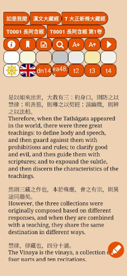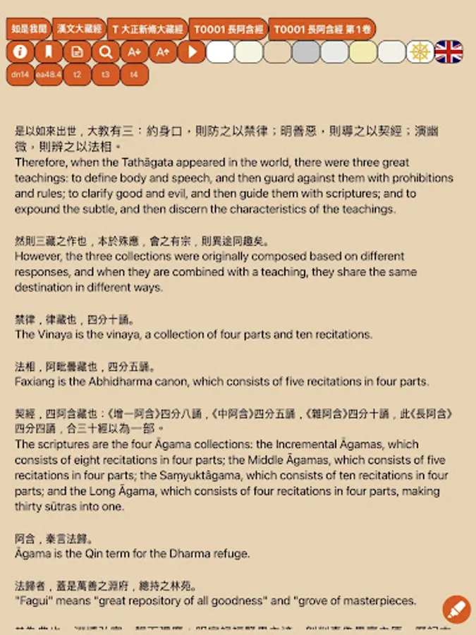 Chinese text and Pali text Sutras and their translations into many languages are included. Easy to read and make notes.