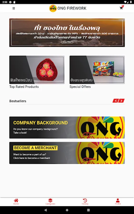 ONG FIREWORKS mainly directly sells products to consumers, and we have more than 500 varieties of products including rocket, novelty firework, sparkles, roman candle, firecracker, salute, skyrocket, catherine wheel, m-80, smoke bomb etc. We mainly sell on the special festivals like Loy Krathong, Buddhist Lent Day, wan-ok-phansa, Lunar New Year, Hijri New Year, Christmas, New Year's Eve, Deepavali and other local festivals.