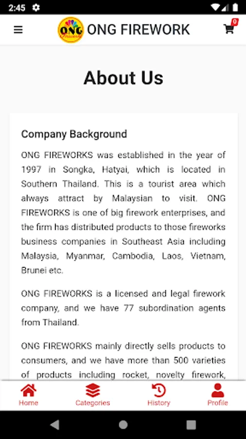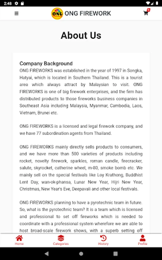 ONG FIREWORKS is a licensed and legal firework company, and we have 77 subordination agents from Thailand.