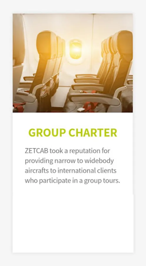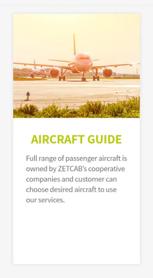 ZETCAB은 전세계 어디서나 실시간으로 예약이 가능한 글로벌 비즈니스(개인)제트기 중계 플랫폼으로 개인제트기 고급여객기 대형여객기 헬리콥터 ,경비행기 등의 항공좌석 또는 전세기임대, 항공기 위탁관리대행과 화물전세기 등을 주요상품으로 취급하는 회사입니다