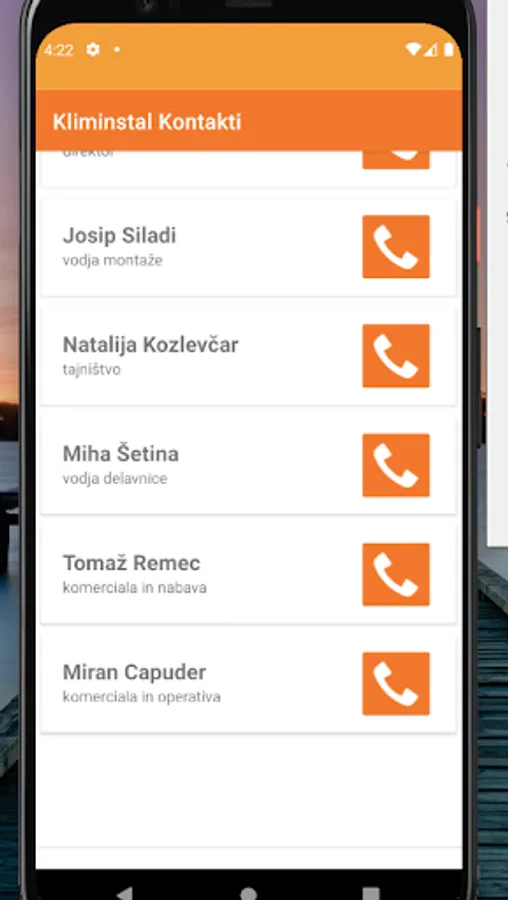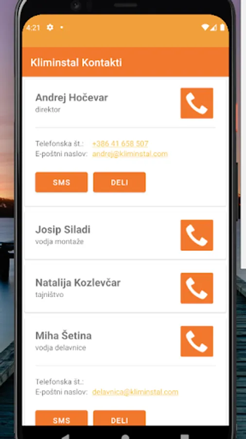 The application contains contacts of Kliminstal employees and enables easy sharing of these contacts.